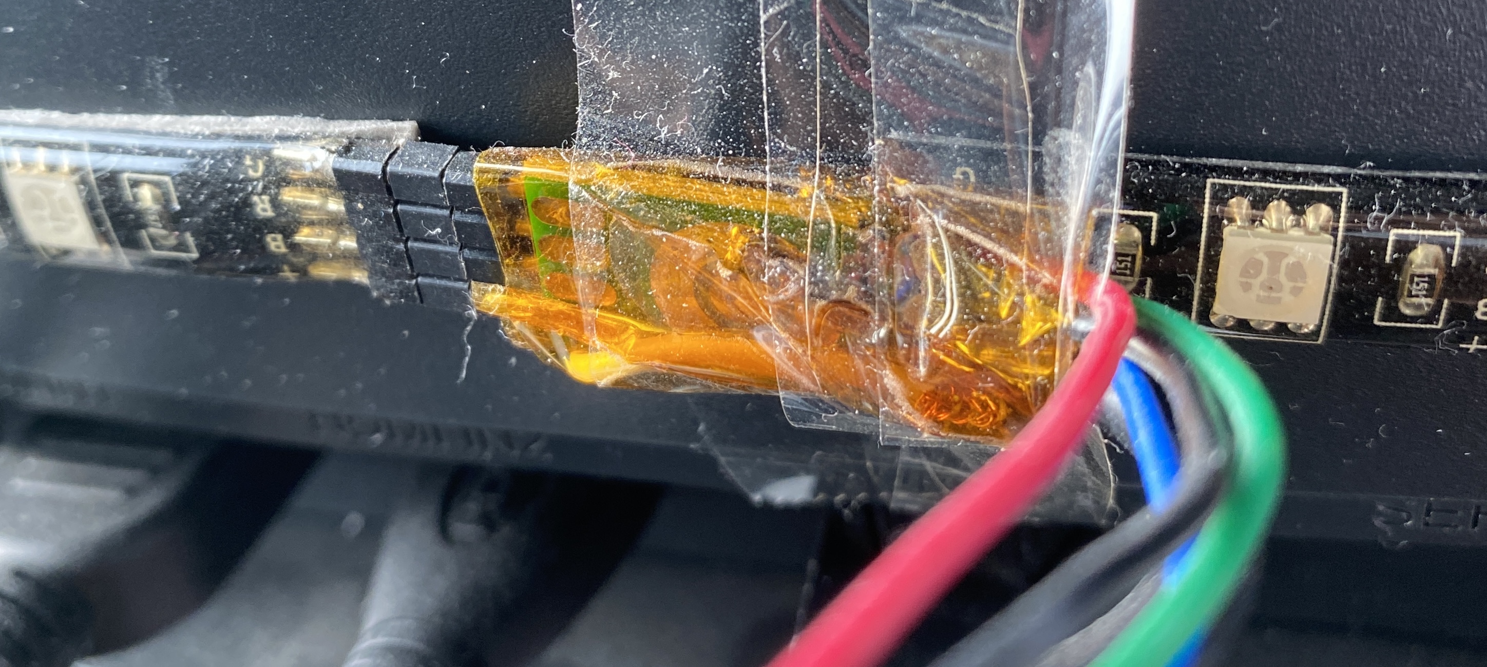 이렇게 대강 핀 케이블 가지고 줄줄이 소세지 마냥 연결했었다. 마침 케이블이 없기도 했고..