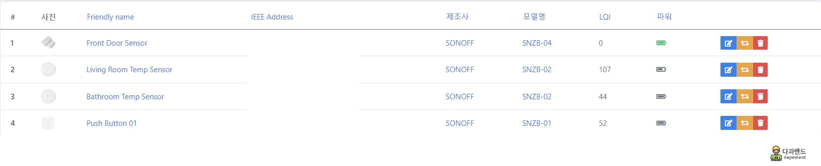 기기들은 뜬느데 LQI (링크 퀄리티; 연결이 얼마나 좋은지)와 각종 센서 정보들이 전부 N/A로 표시되는 것이었다.