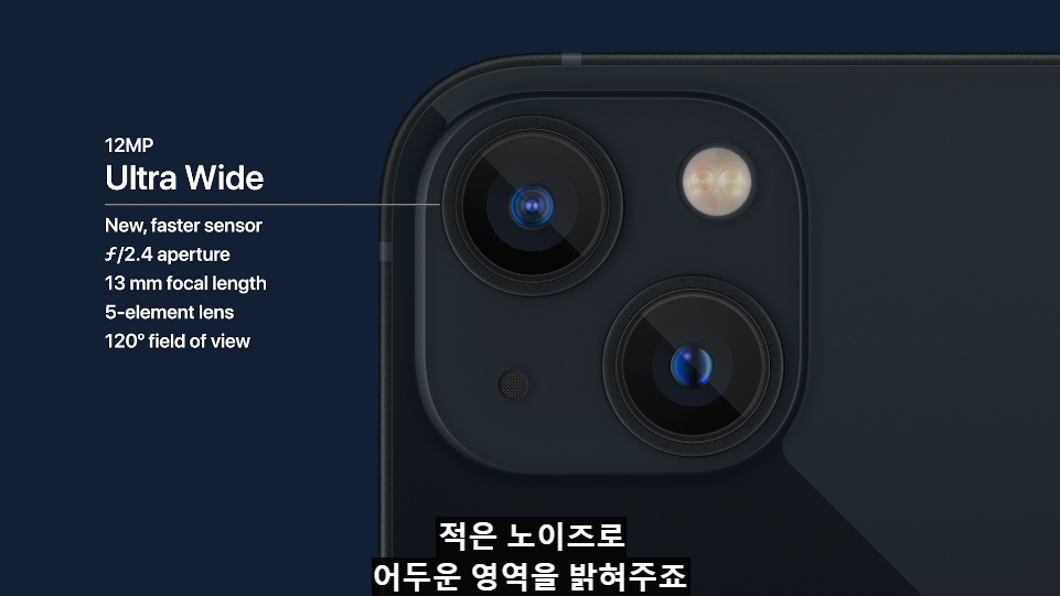 - A15 Bionic 칩이 적용되었습니다. 5nm 기술이 적용된 칩셋입니다. 이 칩셋은 6개의 코어를 가지고 있습니다. 또한 4코어 GPU, 16코어 뉴럴엔진이 적용되었습니다.